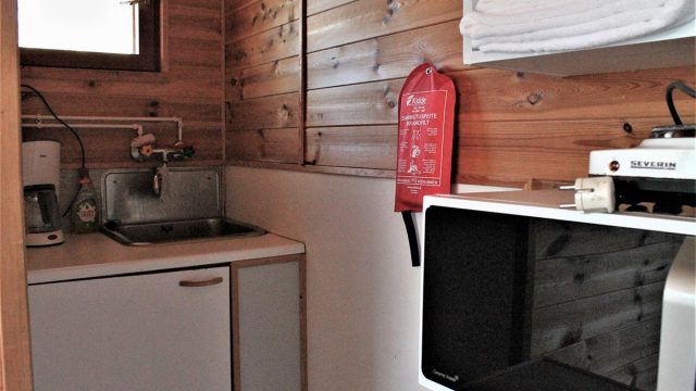 Pihamökit sijaitsevat päärakennuksen (majan) pihapiirissä. WC ja suihkutilat sekä keittiö löytyvät Vuohijärven puoleisesta huoltorakennuksesta.